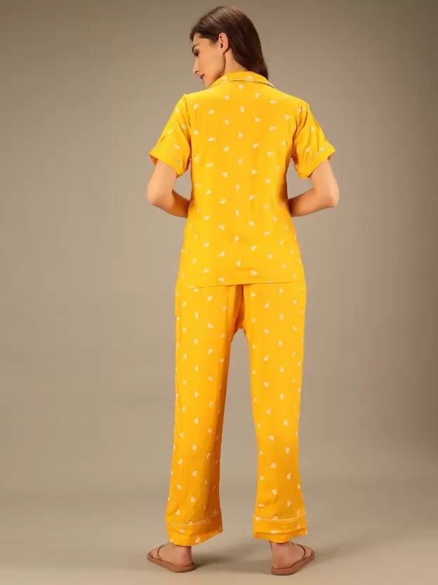 Women Solid Yellow Shirt & Pyjama set