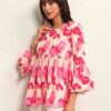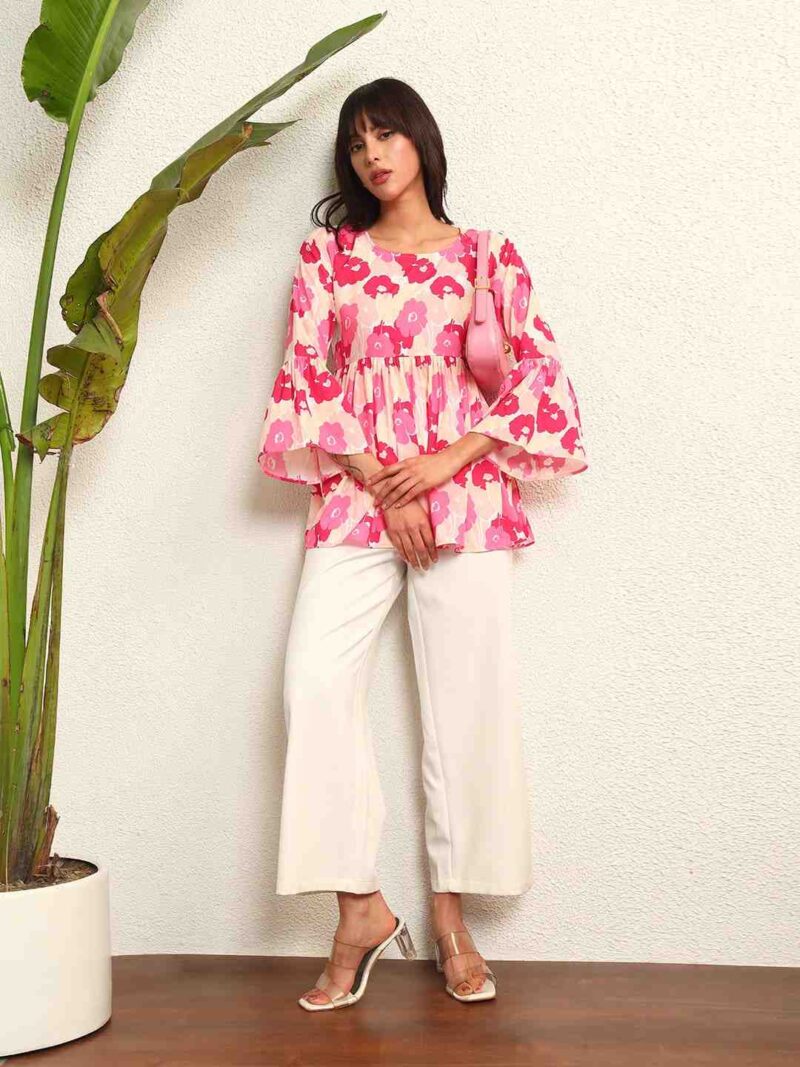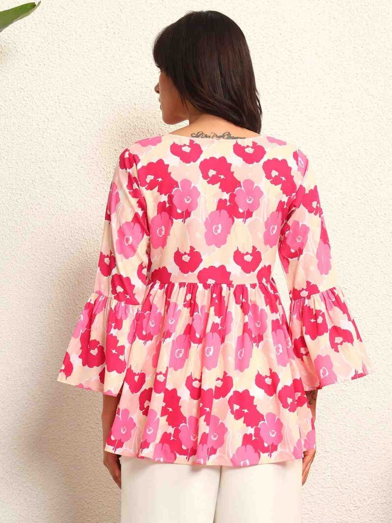 Women Floral Printed Bell Sleeve Peplum Top.